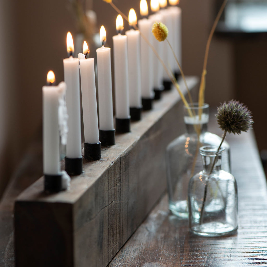 Recycled Wood And Iron Candle Holder For 10 Mini Candles
